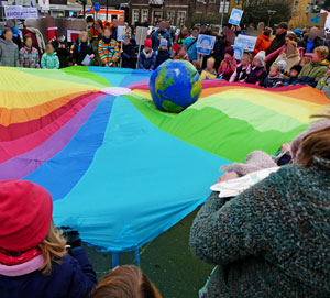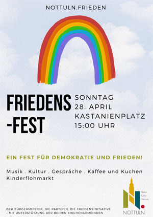 Zahlreiche Gruppen und Personen bereicherten das von Vertretern der politischen Fraktionen im Gemeinderat, der Gemeindeverwaltung, dem Bürgermeister, der Friedensinitiative Nottuln sowie der evangelischen und katholischen Kirchengemeinde organisierte Fest mit einem bunten Programm und bewiesen, dass in Nottuln Demokratie gelebt wird.