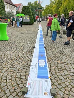 Die Menschen, die sich am Samstag auf Einladung von Bündnis 90/Die Grünen auf den Weg gemacht hatten, um sich mit der Entwicklung unseres Klimas mithilfe des Klimazeitstrahls auf dem Stiftsplatz auseinanderzusetzen und Gespräche zu führen, waren teilweise sehr betroffen.