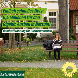 "Ich freue mich, dass jetzt dem Gigabit-Ausbau in Nottuln nichts mehr im Wege steht. Unlängst erhielt die Kommune den Zuwendungsbescheid über 6.490.853 Euro."