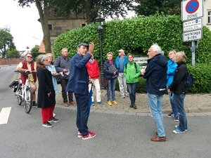 Der Ortsverein lud zu einem Themengang mit anschließender Diskussion. Fraktionssprecher Richard Dammann führte die Teilnehmer:innen über die ehemalige Einkaufsstraße Hagenstraße in den Ortskern, in dem eine große Zerrissenheit deutlich wurde. In vergangenen Jahrzehnten wurden durch Straßen und Pflasterflächen große Schneisen durch die Ortsmitte geschlagen. Der Vorrang des Autos ist unübersehbar.
